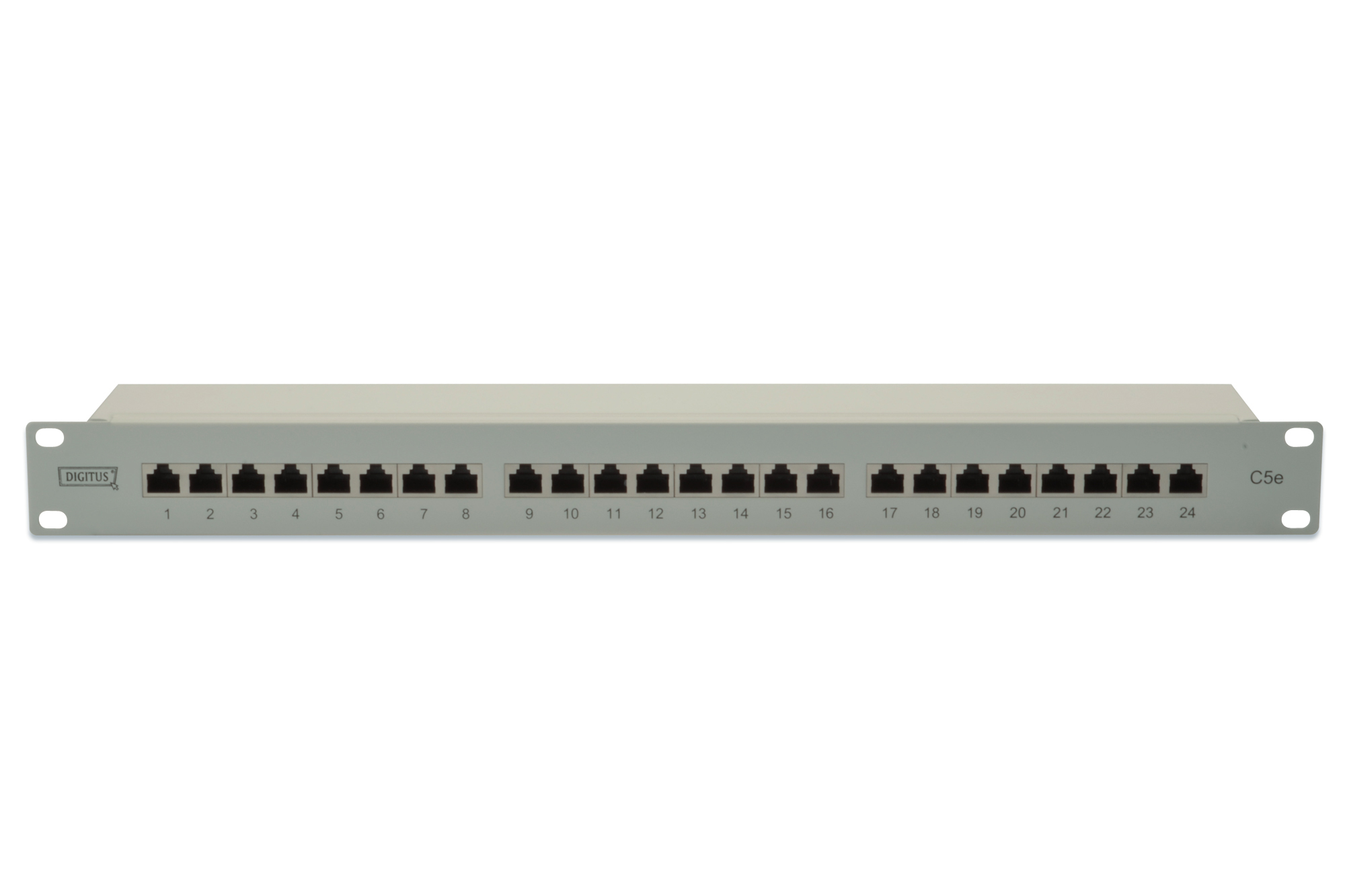 Category: CAT 5e; Ports: 24 x RJ45; Retention strength: 7.7 kg; Insertion force: 30N max