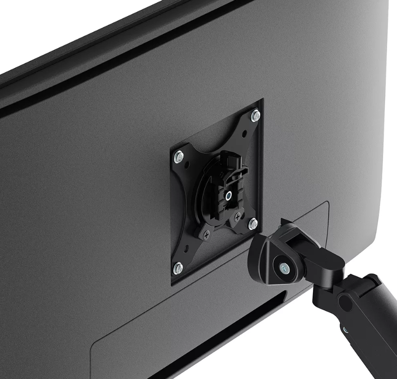 The elegant black VESA plates of the NEXT Slim provide a perfect match with your screen, accommodating standard 75x75 or 100x100 mm VESA patterns. For non-standard hole patterns, Neomounts has various VESA optional adapter plates available. The Quick-release VESA system enables easy setup, while the topfix clamp or grommet ensures a quick and straightforward installation.