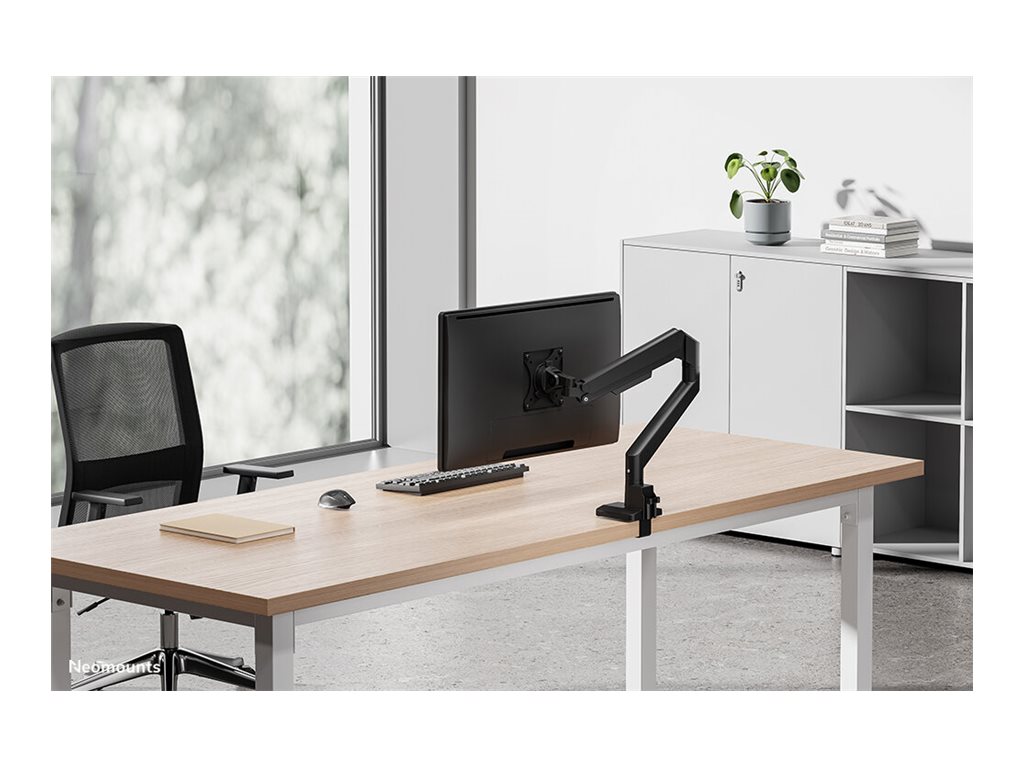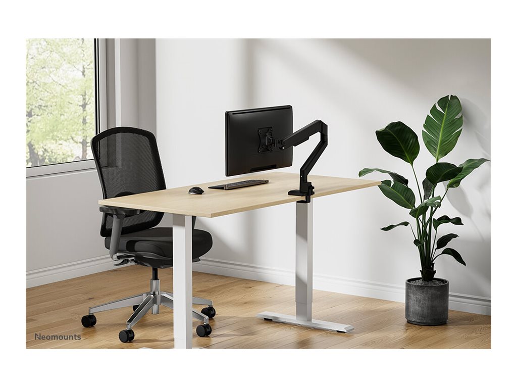 The Neomounts DS70-250BL1 NEXT Slim is a full motion desk mount designed for screens up to 35", boasting a maximum weight capacity of 9 kg suitable for both flat and curved displays. The versatile tilt (90°), rotate (360°) and swivel (180°) technology enables seamless adjustment to any desired viewing angle to fully optimize the screen\'s capabilities. With the gas spring height adjustment (21,5-49,5 cm) and depth adjustment (7-52,5 cm) you can effortlessly adjust the mount to suit your ergonomic needs.