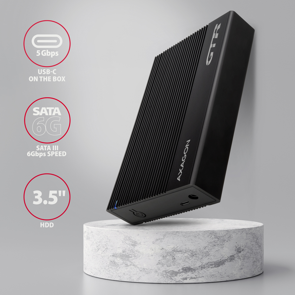 AXAGON Ribbed aluminum USB 3.2 Gen 1 - SATA 6G external box for 3.5\" HDD | EE35-GTR