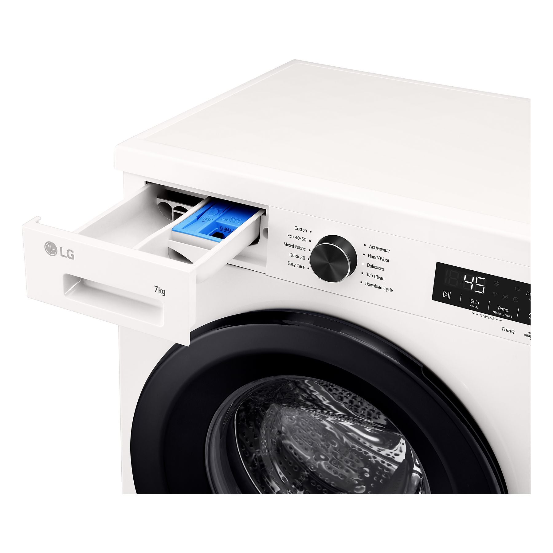 LG F2X10S7NWK | Washing Machine | Energy efficiency class A | Front loading | Washing capacity 7 kg | 1200 RPM | Depth 44 cm | Width 60 cm | Display | LED | Steam function | Essence White (Glossy) | Wi-Fi