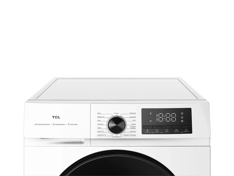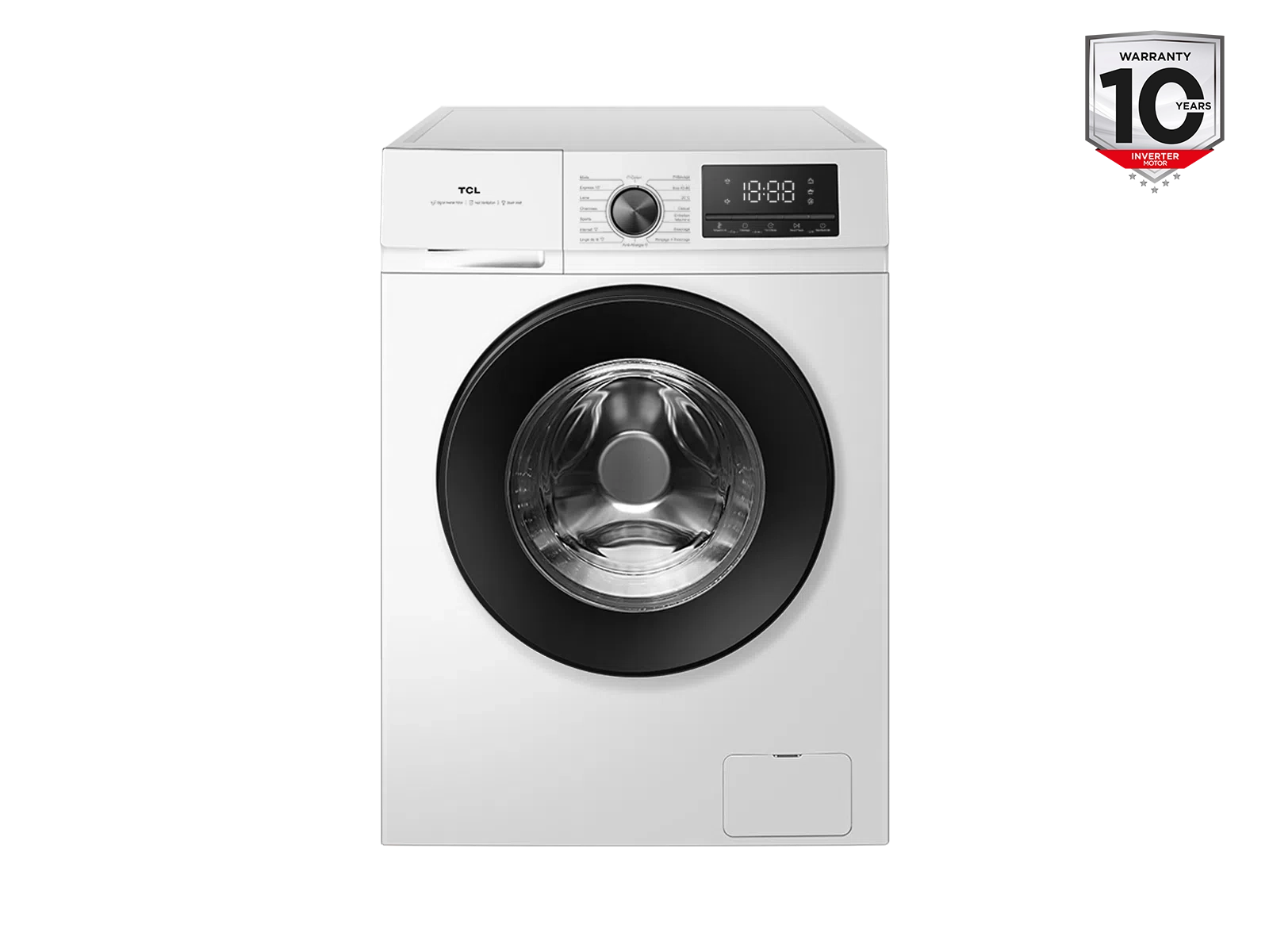 TCL Washing machine | FF1024WA2 | Energy efficiency class A-10% | Front loading | Washing capacity 10 kg | 1400 RPM | Depth 61 cm | Width 59.5 cm | Display | LED | Steam function | White