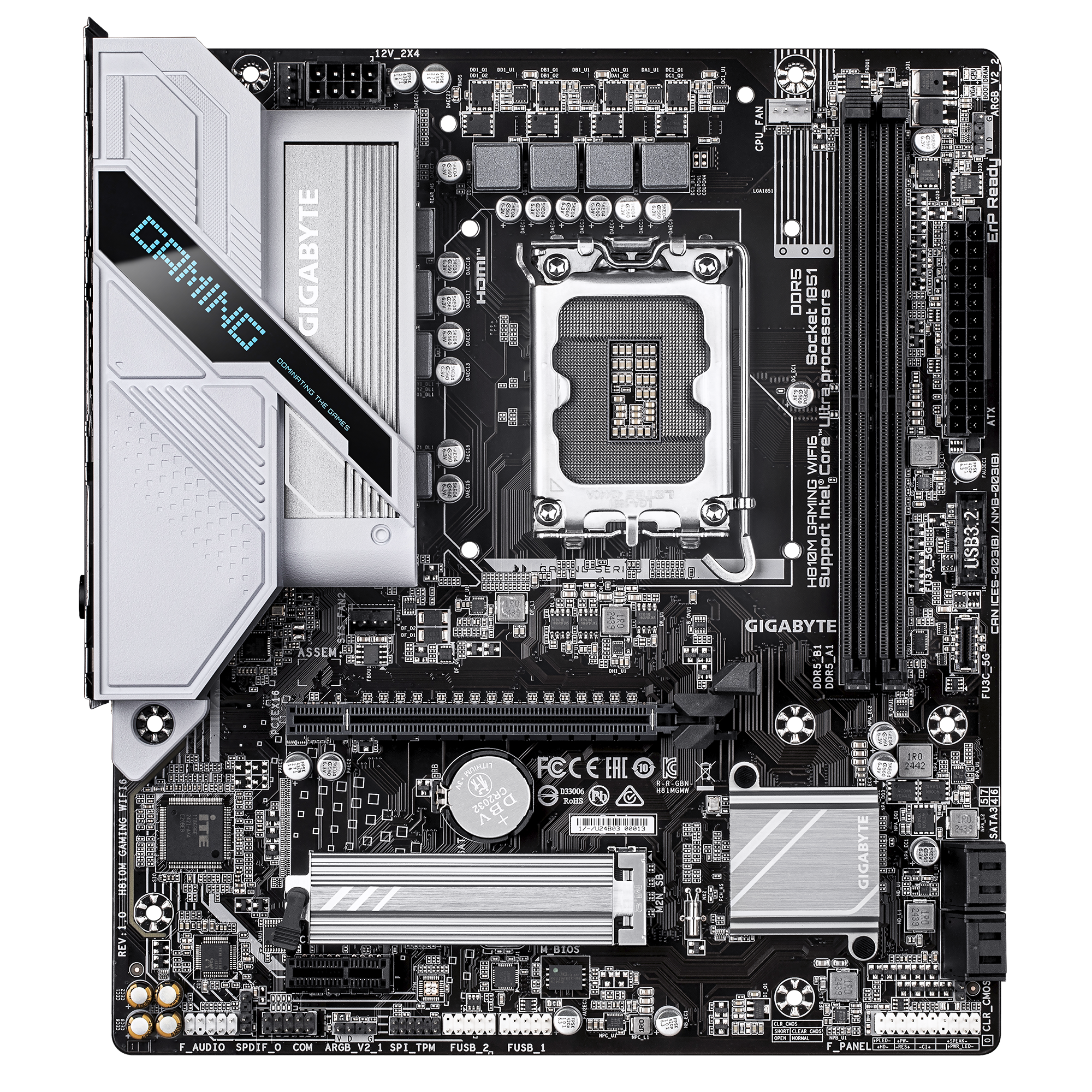 Gigabyte H810M GAMING WIFI6 | Processor family Intel | Processor socket LGA1851 | DDR5 | Supported hard disk drive interfaces M.2, SATA | Number of SATA connectors 4