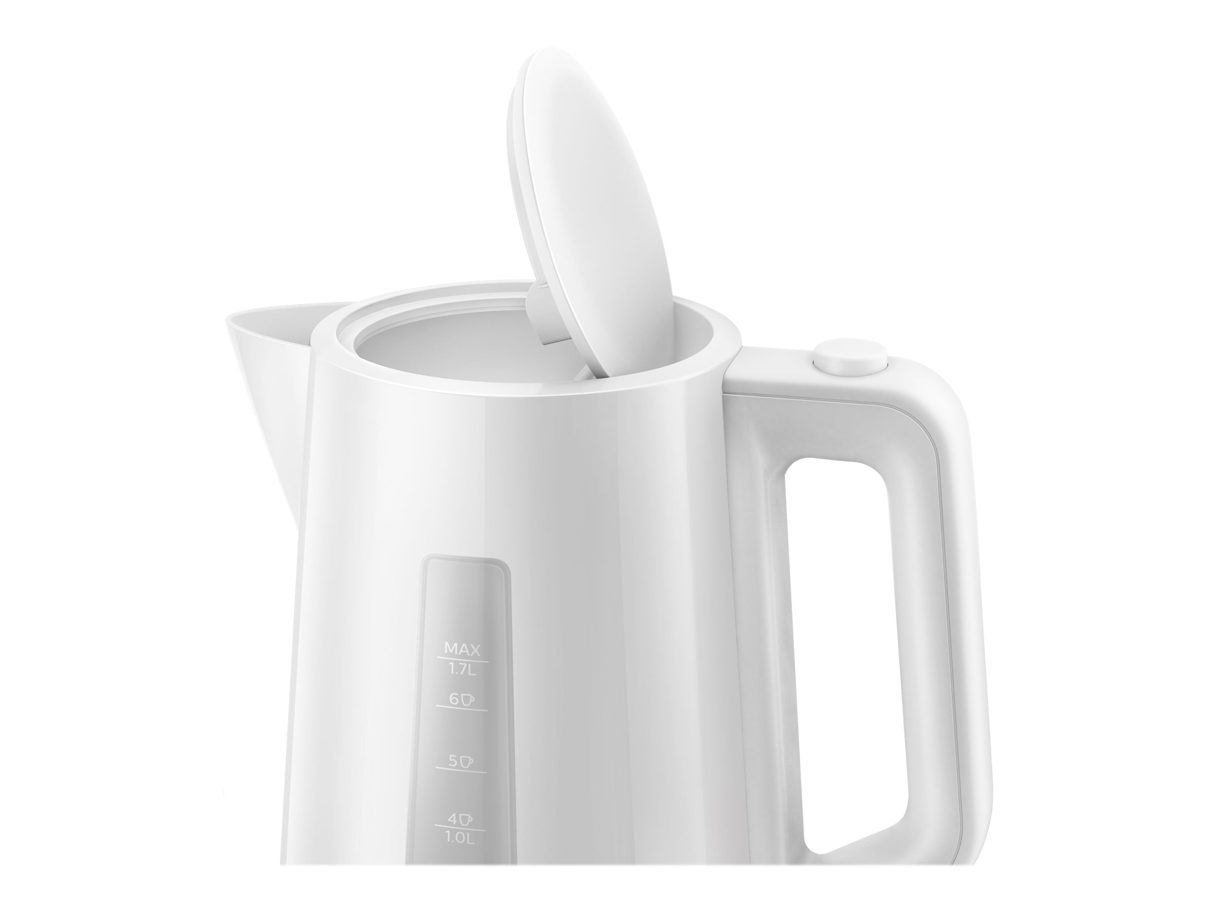 The new Philips plastic kettle with 1.7 L capacity, automatic lid opening and light indicator gives you the opportunity to easily make your favorite drink in no time.