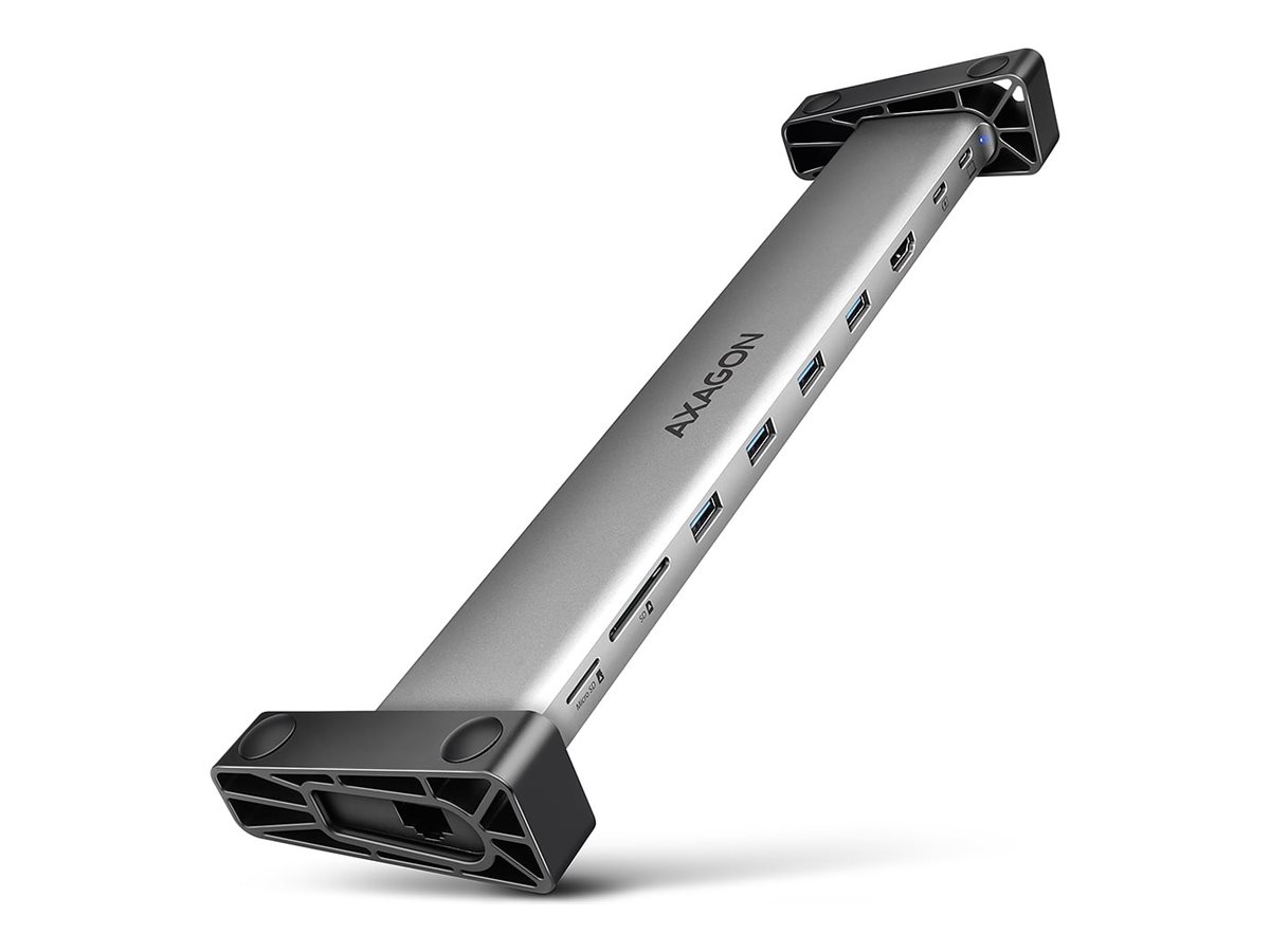 The multi-port USB-C 5Gbps AXAGON HMC-10HLS LONGER hub 9in1 expands your laptop, computer or phone with nine ports. You can easily and quickly connect a monitor, four USB devices, Gigabit Ethernet network and an SD card reader to your computer via the double-sided USB-C connector. You also get the possibility to supply laptop using Power Delivery technology at the same time. The port replicator will thus provide you with a simple and compact 9in1 docking station not only for Windows laptops but also for Apple laptops such as MacBook Air or MacBook Pro.