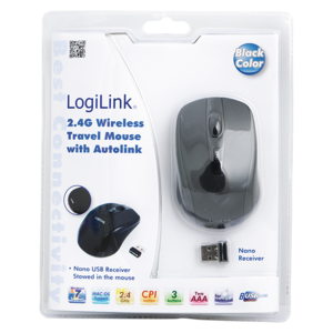 *2.4 GHz wireless technology, 48 channels*3 programmable buttons*Vertical scroll wheel*Resolution: 800/1600 dpi*USB Micro Dongle with Autolink*3-step power-save modes*Distance: 6-10 m*2x AA batteries*Plug & Play