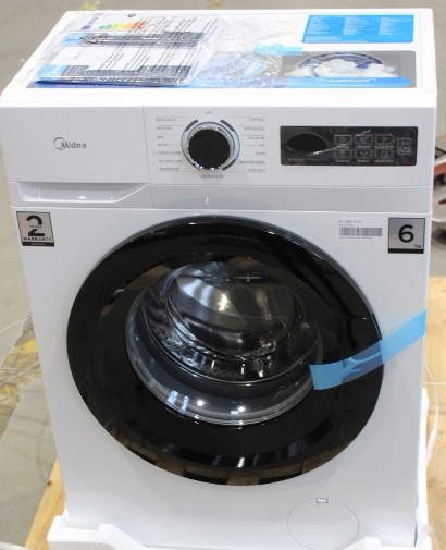 SALE OUT. Midea MF110W60/W-HR Washing Machine | Midea Washing Machine | MF110W60/W-HR | Energy efficiency class D | Front loading | Washing capacity 6 kg | 1000 RPM | Depth 40 cm | Width 60 cm | LED | Steam function | White | DAMAGED PACKAGING