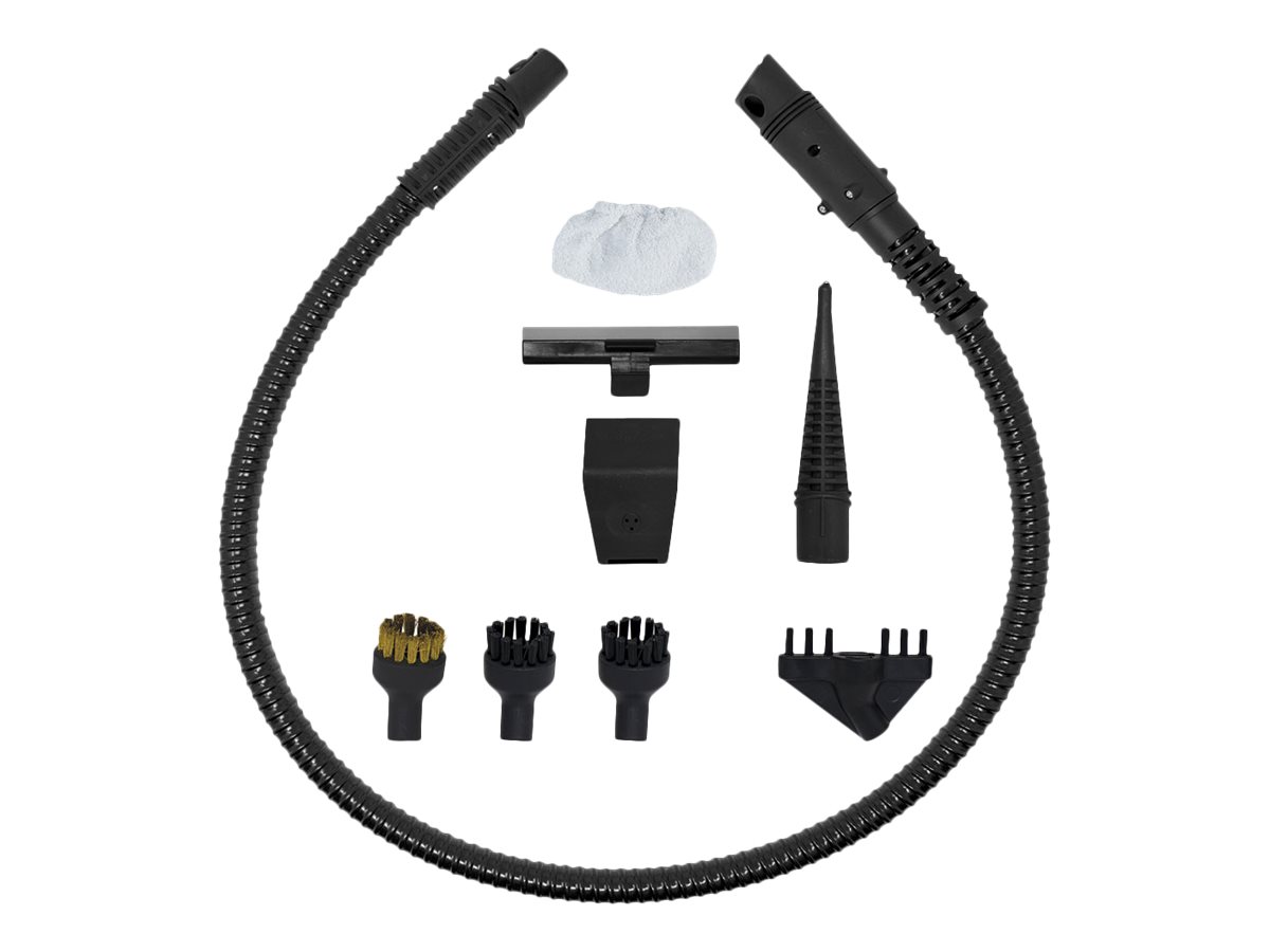 | Piederumi iekļauti komplektācijā | 3 x Floor cloths; Sockette; Flexible steam hose; Steam lance; Window cleaner frame; Round brush with brass bristles; 2 x Round brushes with nylon bristles; Grout accessory; Upholstery accessory |