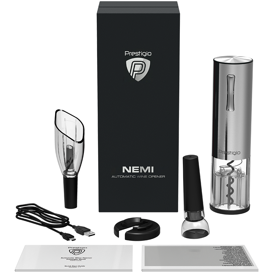 | Iekļauti aksesuāri | USB Cable Ātrā lietošanas pamācība Garantijas karte Smart Wine Opener Foil Cutter Aerator Vacuum Stopper Preserver |