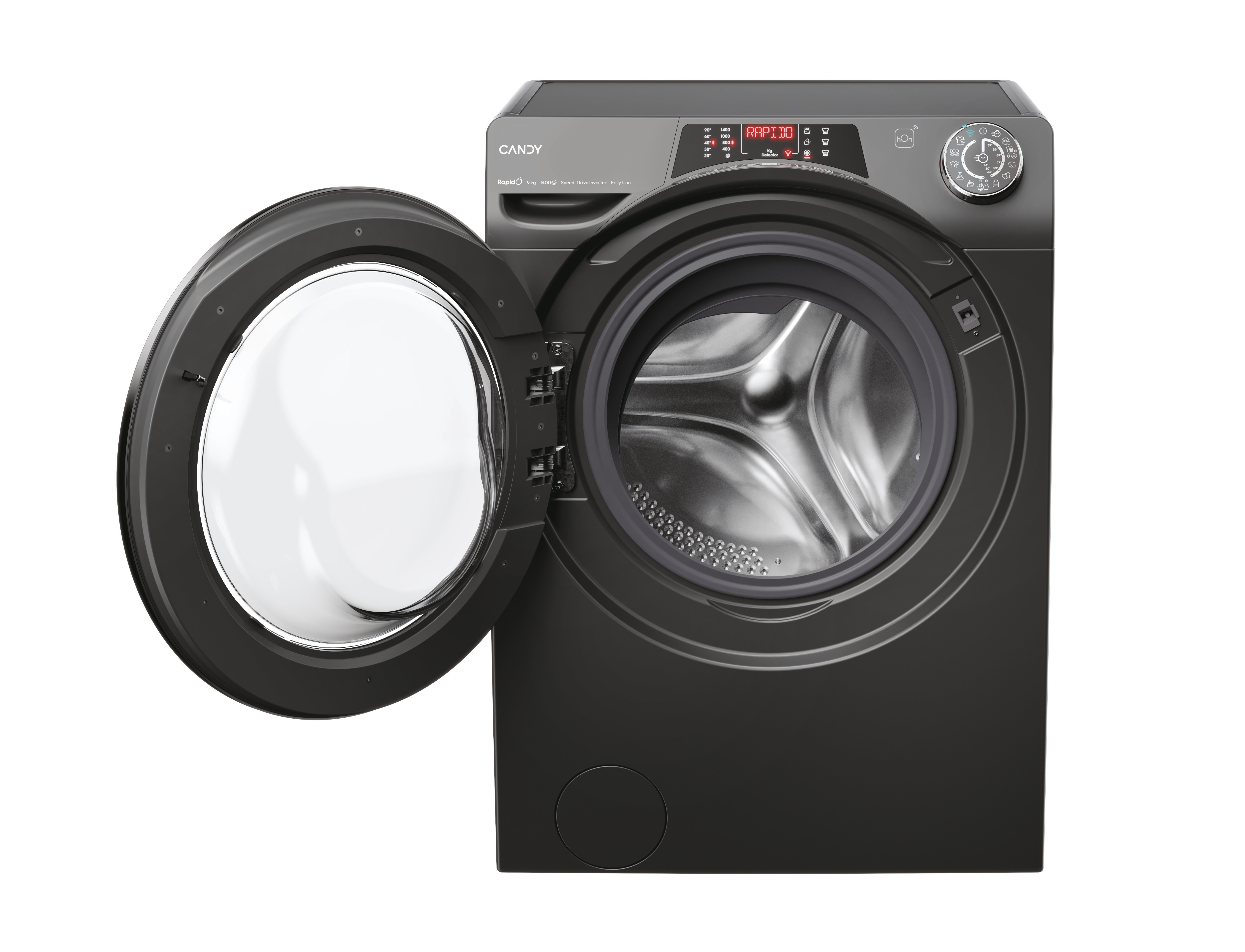 • Freestanding Front-load 9 kg 1400 RPM Anthracite • Built-in display • Steam • Delayed start timer Remaining time indication Child lock • Spin-drying class: B • B 76 dB • A 49 kWh 46 L