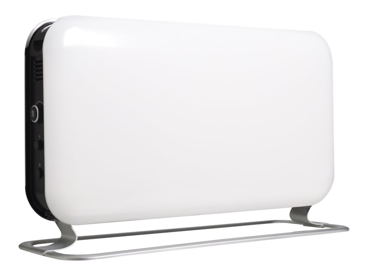 Extremely rapid heat, 100% silent operations, Electronical thermostat. Tip-over switch.