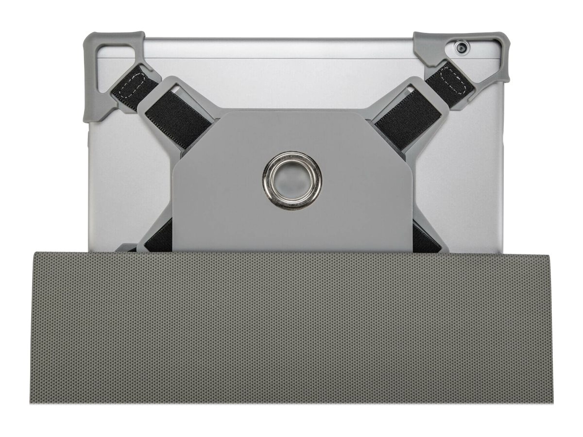 Patented 360-degree cradle rotation enables easy portrait and landscape viewing; Flexible cradle with reinforced corners secures and protects tablet; Magnetic wrap closure