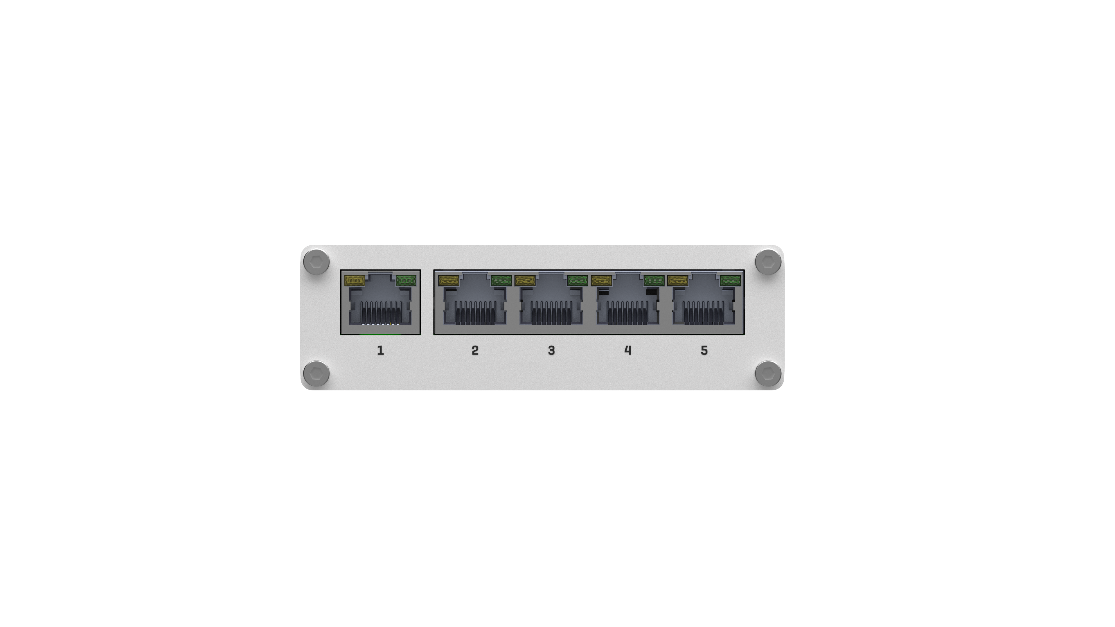 It has five 10/100/1000 Mbps Ethernet ports for an