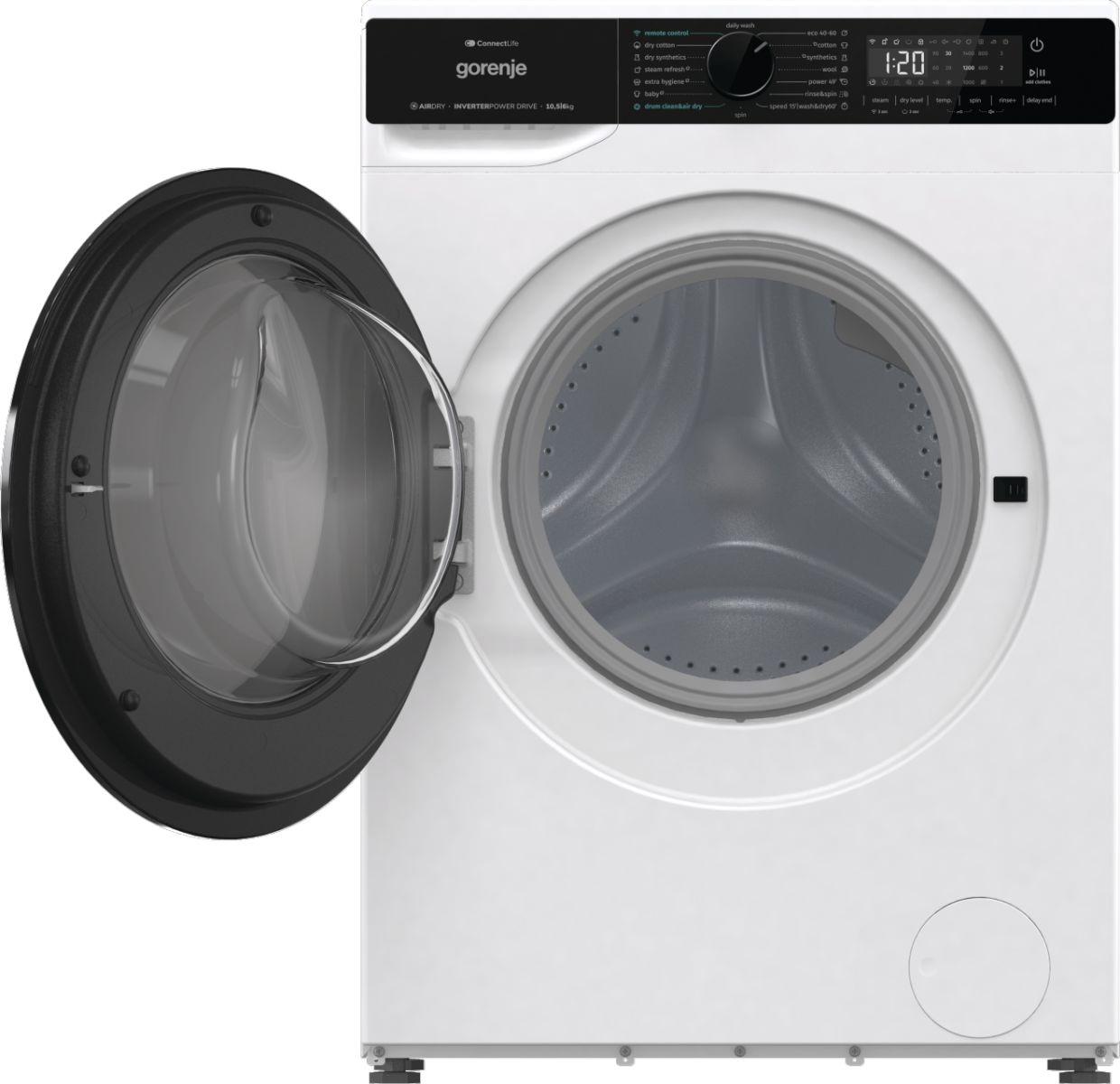 Gorenje Washing Machine with Dryer | WD2PA1X64ADW | Energy efficiency class A/D | Front loading | Washing capacity 10.5 kg | 1400 RPM | Depth 59 cm | Width 60 cm | Display | LED | Drying system | Drying capacity 6 kg | Steam function | Wi-Fi | White