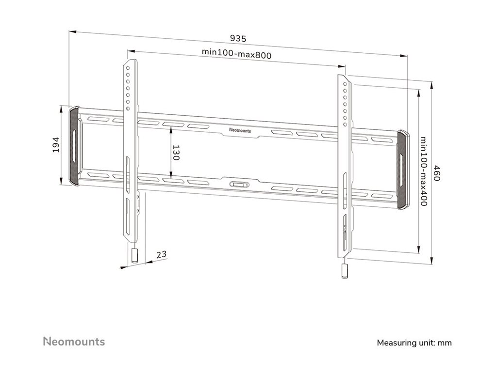 The LEVEL-550 wall mount is ultra-flat with a depth of 2,3 cm and is suitable for screens that meet VESA hole pattern 100x100 to 800x400mm.